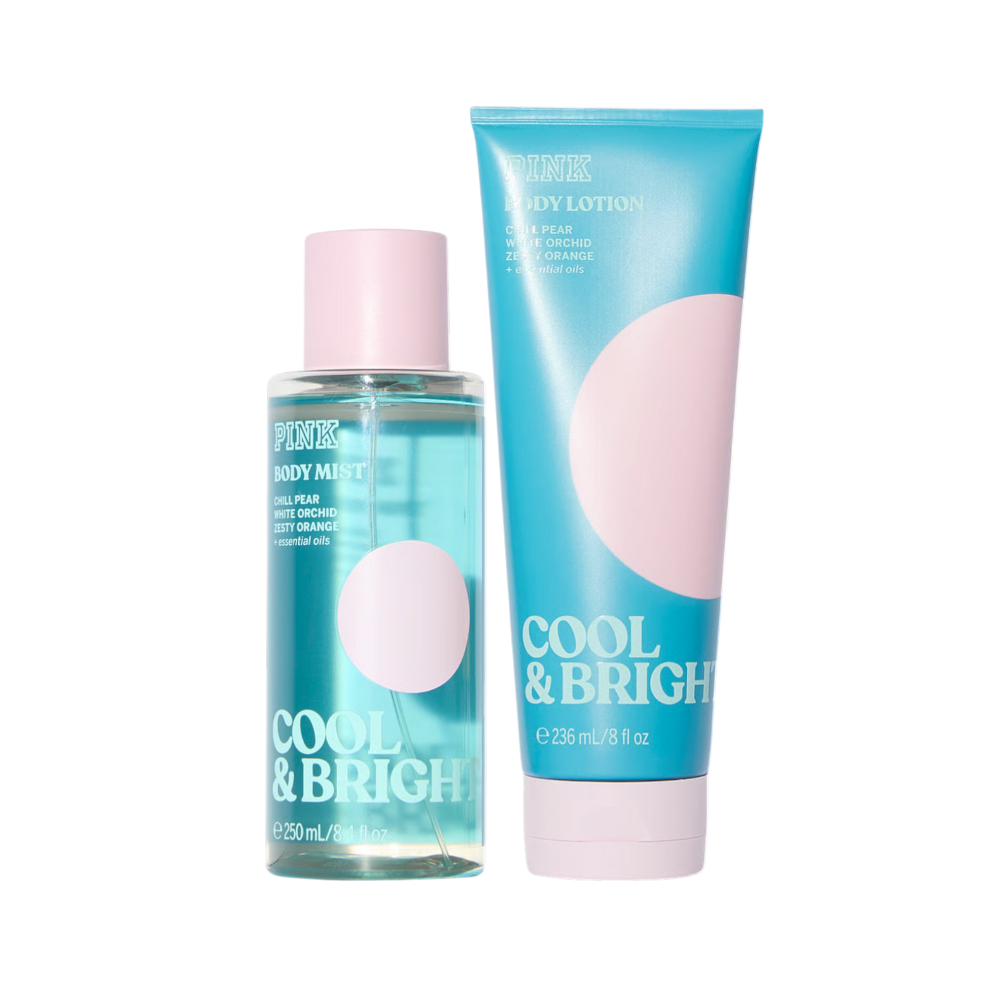 Komplekts ar parfimētu ķermeņa spreju 250 ml un losjonu 236 ml no Victoria’s Secret PINK kolekcijas, ar ēteriskajām eļļām. Viegls, dzirkstošs un atsvaidzinošs aromāts – vēss bumbieris savijas ar eksotisku balto orhideju un svaigu citrusaugļu dzīvīgumu. Komplektā aromāts atklājas pilnīgāk: sprejs piešķir gaisīgu svaigumu, bet losjons – maigumu, komfortu un ilgāku noturību.
