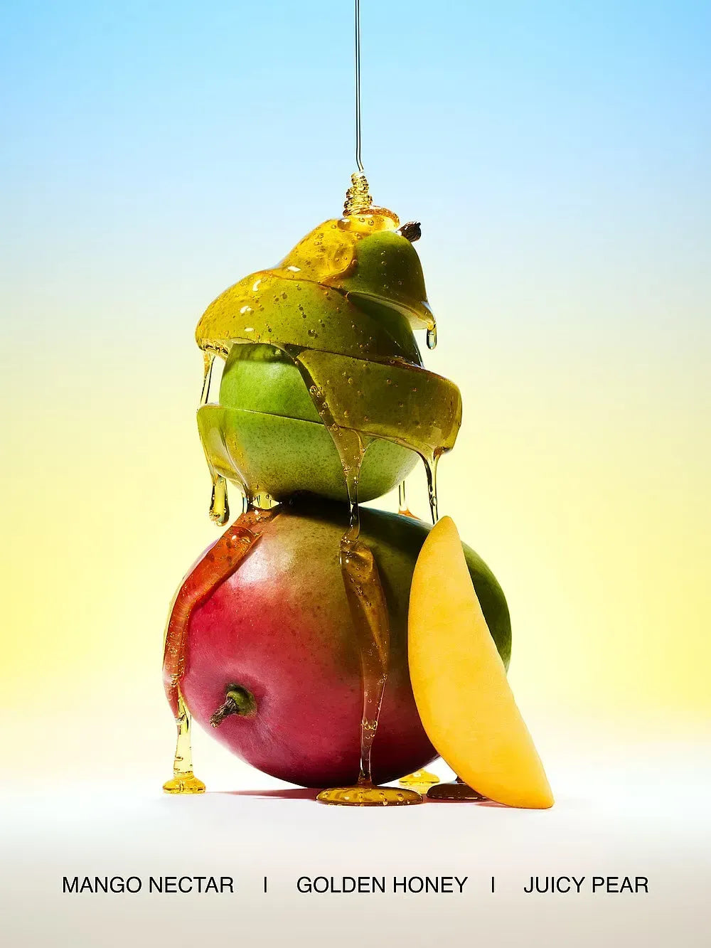 Notis: Mango nektārs, zeltains medus, sulīgs bumbieris