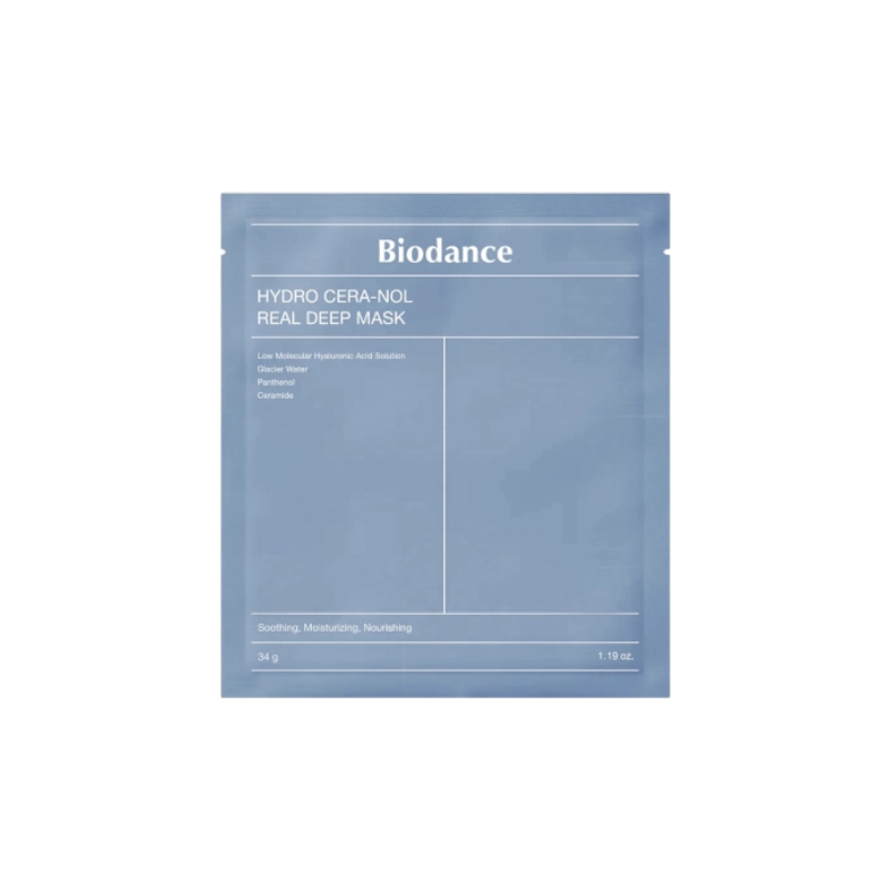 Biodance Hydro Cera-nol Real Deep Mask ir intensīvi mitrinoša un ādas barjeru atjaunojoša hidrogēla sejas maska (34 g), kas izstrādāta sausai, dehidrētai un jutīgai ādai. Tā palīdz atjaunot mitruma līmeni, stiprina ādas aizsargbarjeru un mazina jutīgumu, sniedzot ilgstošu komfortu un elastību.
