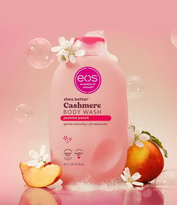 EOS Dušas želeja 473 ml. Jasmine Peach ir salds, saulains un harmoniski sabalansēts aromāts, kur aprikožu nektārs savijas ar dzirkstošu jasmīnu un siltu vaniļas cukuru. Svaigs, gluds un zeltains - katra mazgāšanās kļūst par maigu, komfortablu rituālu.