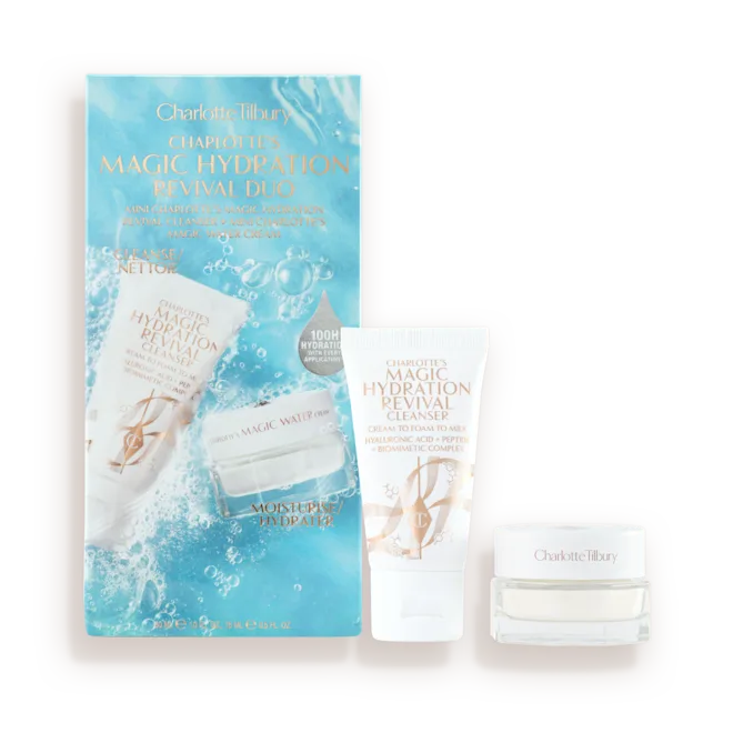 Charlotte Tilbury Charlotte’s Magic Hydration Revival Duo ideāls mini komplekts dziļai attīrīšanai + ilgstošai mitrināšanai, kas palīdz ādai izskatīties svaigākai, gludākai un starojošākai. Abi produkti strādā kopā “mitrinošā harmonijā”, lai sniegtu rezultātu, ko vari redzēt un sajust - lieliski piemērots ceļojumiem, kā dāvana vai ikdienas ādas kopšanas atsvaidzināšanai. Tilpums: 2 produkti (30ml + 15ml)