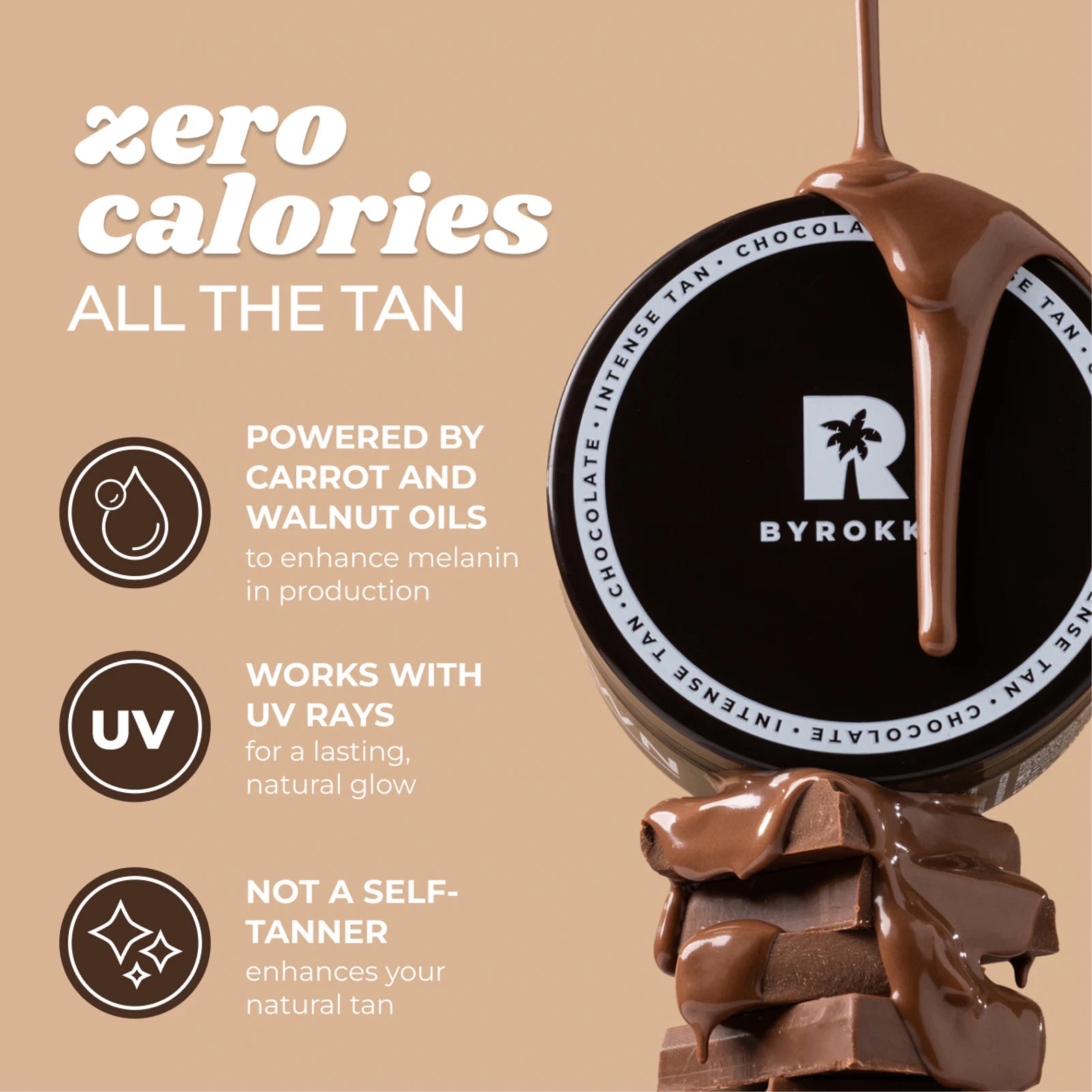 Ātri bronzējošs iedeguma krēms no BYROKKO – Shine Brown™ Chocolate (Super XXL). Intensīvs iedeguma krēms, kas palīdz iegūt dziļu, tumšu šokolādes iedegumu, pavadot mazāk laika saulē vai solārijā. Bagātīgā formula apvieno augstākās kvalitātes sviestus un eļļas, kas ne tikai paātrina bronzēšanos, bet arī kopj, mitrina un mīkstina ādu visa procesa laikā.