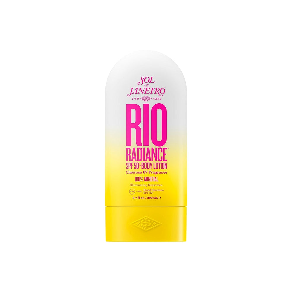 Ķermeņa losjons ar SPF 50 no Sol de Janeiro, 200 ml – viegls, mitrinošs un izgaismojošs losjons, kas palīdz aizsargāt ādu no saules starojuma, vienlaikus izlīdzinot ādas toni un piešķirot tai veselīgu starojumu. Piemērots visiem ādas tipiem ikdienas lietošanai.