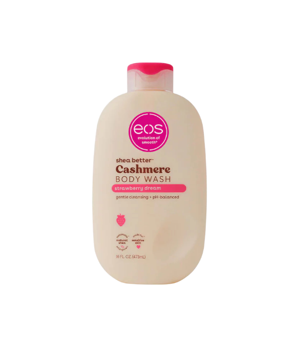 EOS Dušas želeja 473 ml. Strawberry Dream ir salds, krēmīgs un kārdinošs aromāts, kur dzirkstošas zemenes, rozā cukurs un maigs vaniļas krēms saplūst gardā, sapņainā noskaņā. Grezna, ādai draudzīga formula, kas attīra bez sausuma sajūtas un padara katru mazgāšanos par saldu baudu.