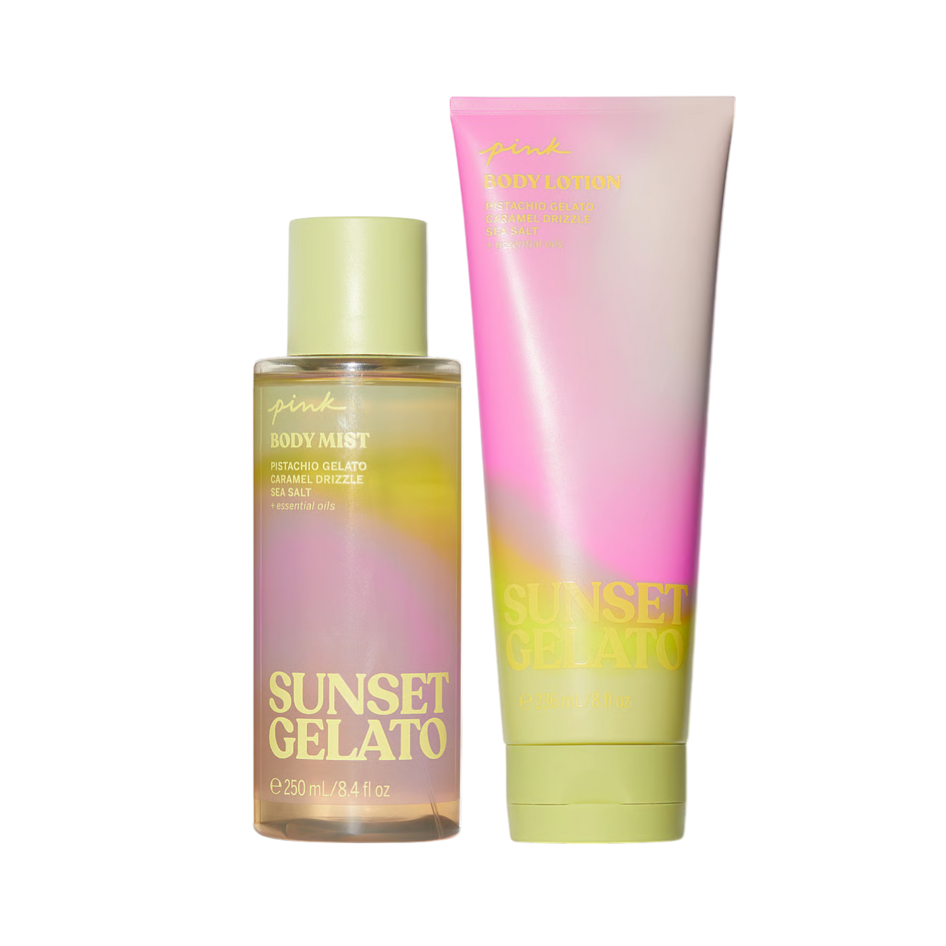 Limited Edition komplekts ar parfimētu ķermeņa spreju 250 ml un ķermeņa losjonu 236 ml no Victoria’s Secret PINK kolekcijas, ar ēteriskajām eļļām.
