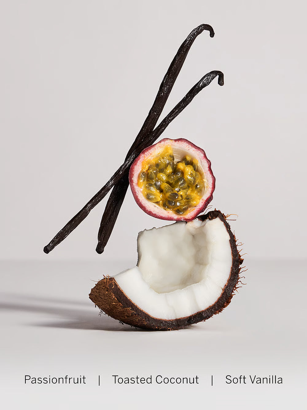 Galvenās notis: maiga vaniļa, grauzdēts kokosrieksts, pasiflora