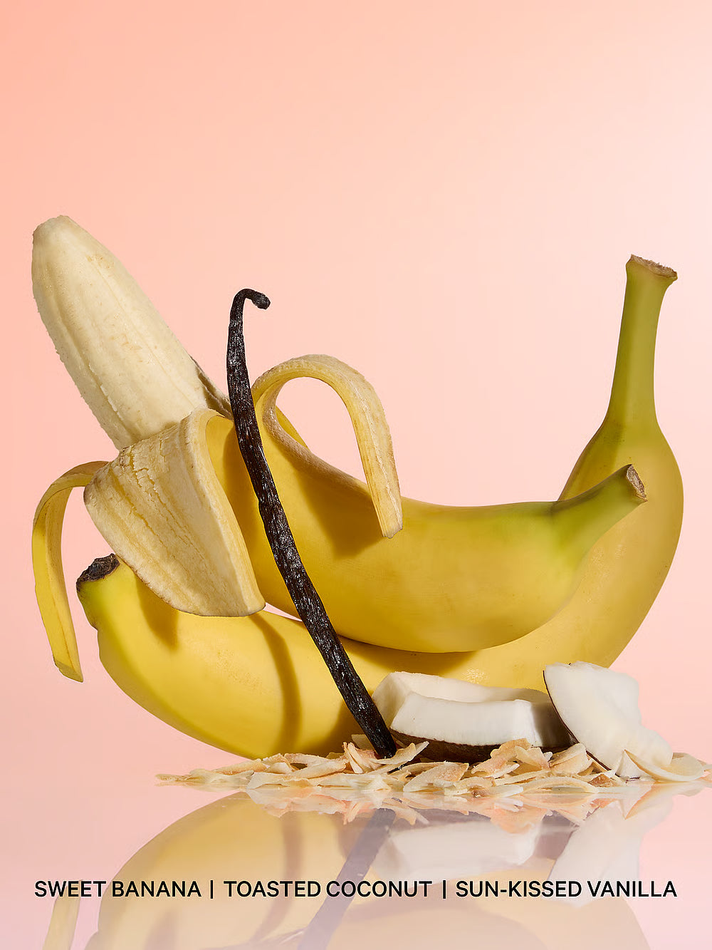 Parfimēts ķermeņa sprejs Limited Edition, 250 ml, no Victoria’s Secret PINK kolekcijas, ar ēteriskajām eļļām. Silts, saules apspīdēts un sapņains aromāts – saldens banāna pieskāriens saplūst ar viegli grauzdētu kokosriekstu un saules skūpstītu vaniļu. Mājīgs, nostaļģisks un pludmalē iedvesmots noskaņojums, kas atgādina basas pēdas zeltainajā stundā un vēlmi palikt pie jūras mazliet ilgāk.